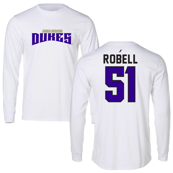 James Madison University Football White Classic Long Sleeve - #51 Riley Robell