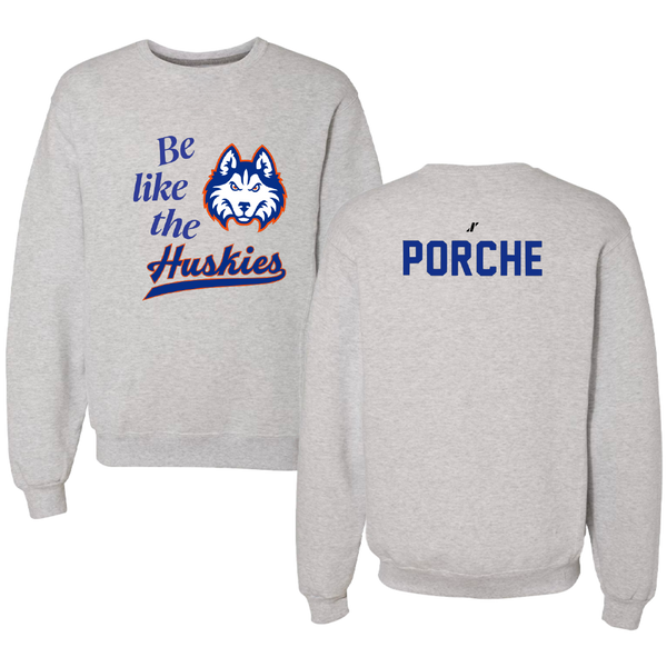 Houston Christian University Baseball Light Gray Be Like Us Crewneck - #35 Ryan Porche