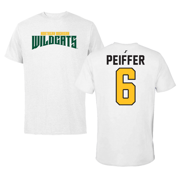 Northern Michigan University Football White Tee - #6 Sam Peiffer