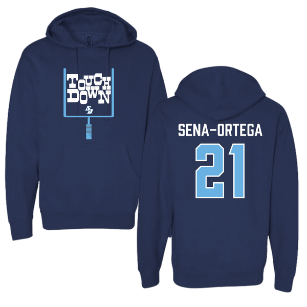 University of San Diego Football Navy Touchdown Hoodie - #21 Trey Sena-Ortega