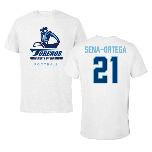 University of San Diego Football White Tee - #21 Trey Sena-Ortega
