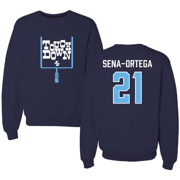 University of San Diego Football Navy Touchdown Crewneck - #21 Trey Sena-Ortega