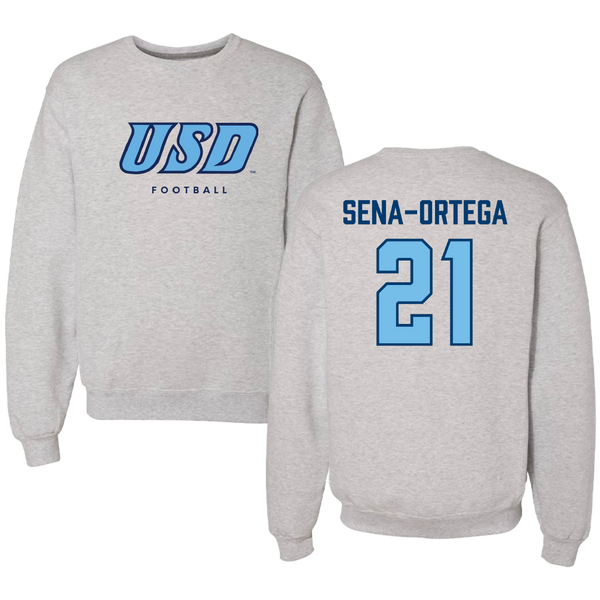 University of San Diego Football Gray Crewneck - #21 Trey Sena-Ortega
