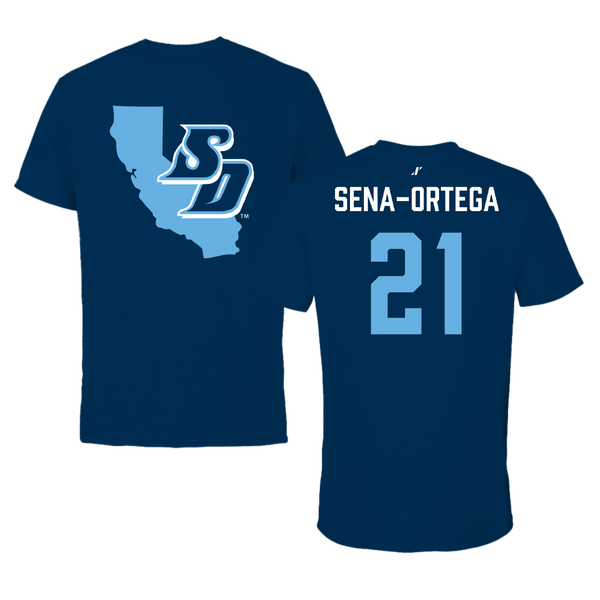 University of San Diego Football Navy State Tee - #21 Trey Sena-Ortega
