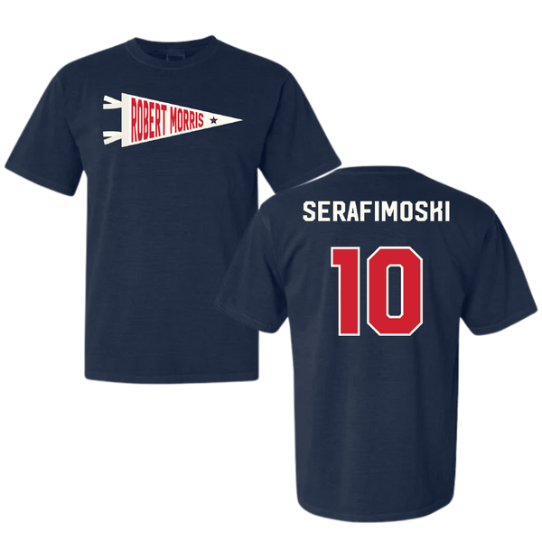 Robert Morris University Basketball Navy Pennant Comfort Colors Tee - #10 Vasilije Serafimoski