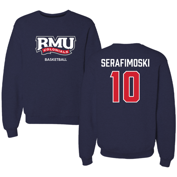 Robert Morris University Basketball (M) Navy RMU Crewneck - #10 Vasilije Serafimoski
