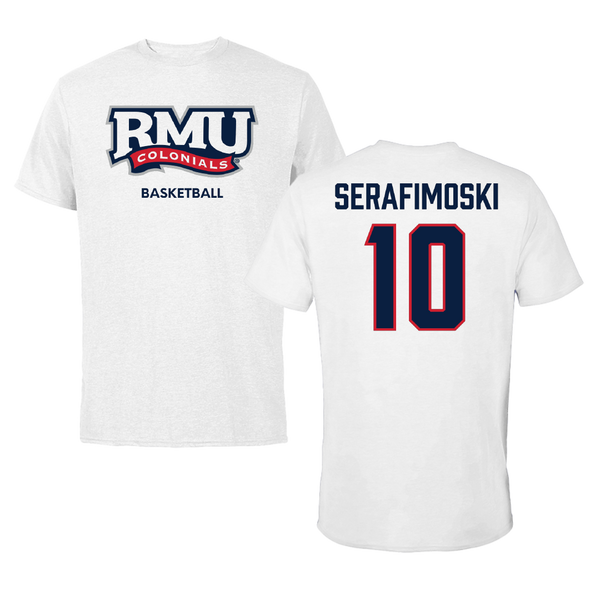 Robert Morris University Basketball (M) White Tee - #10 Vasilije Serafimoski