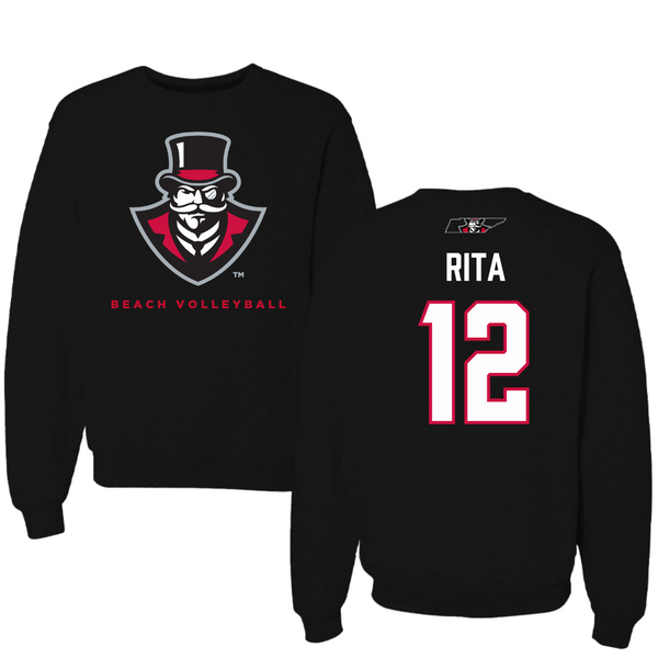 Austin Peay State University Beach Volleyball Black Mascot Crewneck - #12 Anna Rita