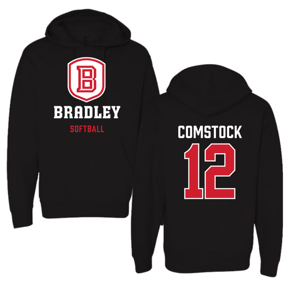 Bradley University Softball Black WHM Hoodie - #12 Austin Comstock