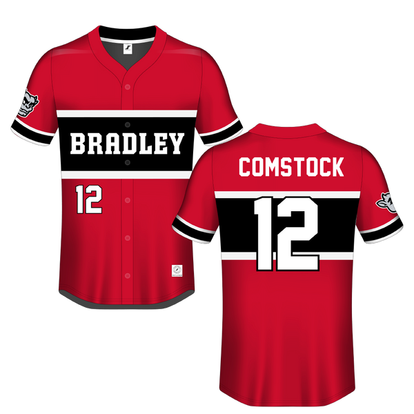 Bradley University Red Button-Down Jersey - #12 Austin Comstock