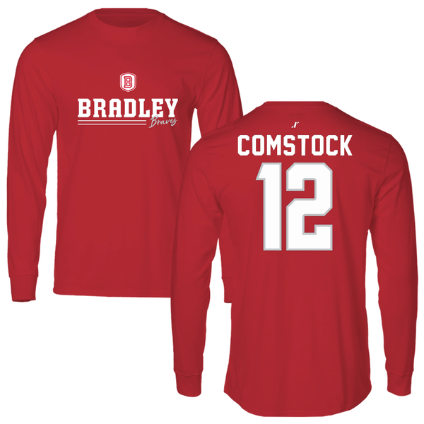 Bradley University Softball Red General Long Sleeve - #12 Austin Comstock