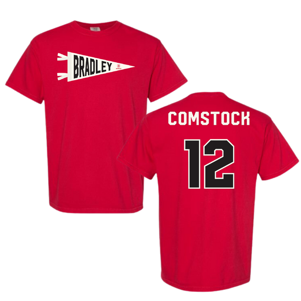 Bradley University Softball Red Pennant Comfort Colors Tee - #12 Austin Comstock