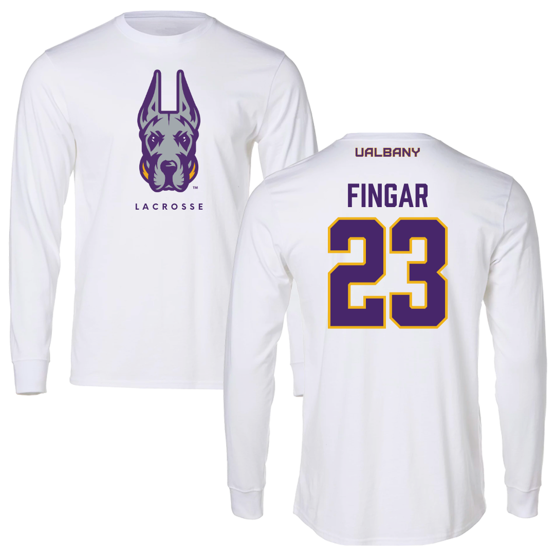 University at Albany Lacrosse White Long Sleeve - #23 Conner Fingar