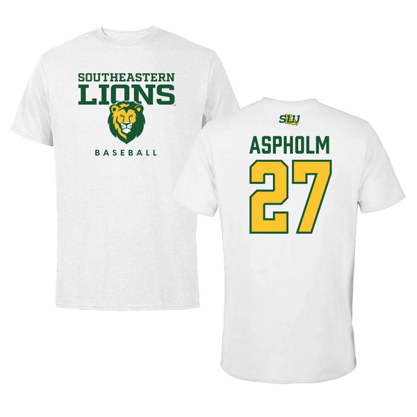 Southeastern Louisiana University Baseball White Tee - #27 Dalton Aspholm
