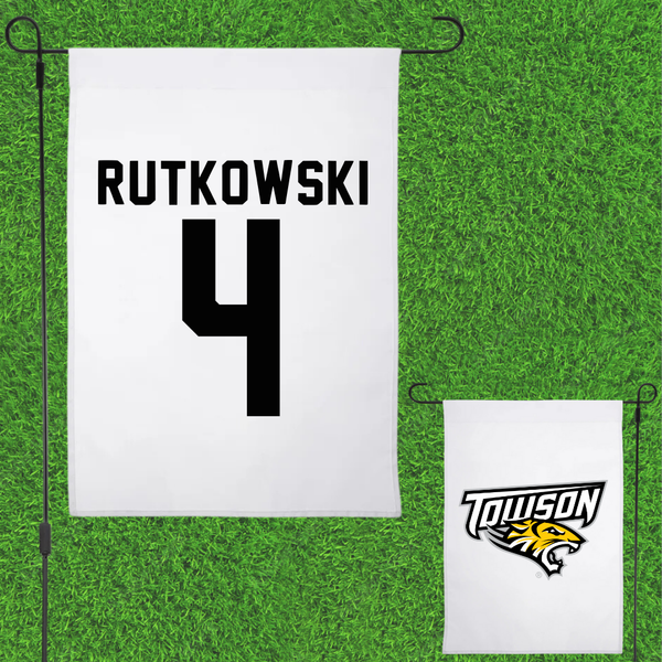 Towson University Football White Garden Flag - #4 Evan Rutkowski