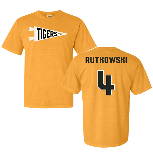 Towson University Football Gold Pennant Comfort Colors Tee - #4 Evan Rutkowski
