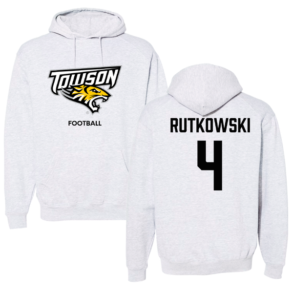 Towson University Football Light Gray Hoodie - #4 Evan Rutkowski