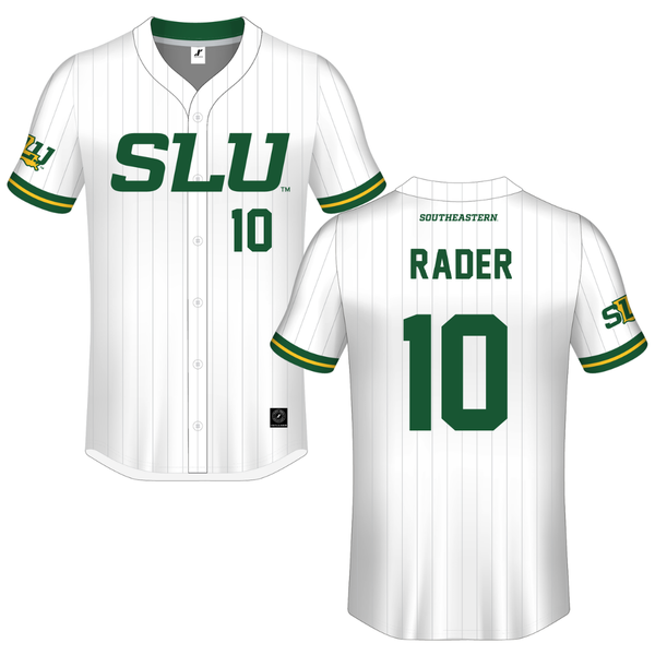 Southeastern Louisiana University White Pinstripe Button-Down Jersey - #10 Jeremy Rader