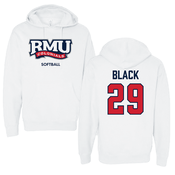Robert Morris University Softball White Classic Hoodie - #29 Logan Black