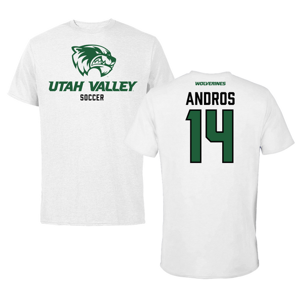 Utah Valley University Soccer White Performance Tee - #14 Mark Andros