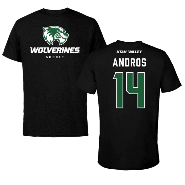 Utah Valley University Soccer Black Wolverines Tee - #14 Mark Andros