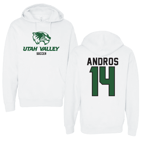 Utah Valley University Soccer White Classic Hoodie - #14 Mark Andros