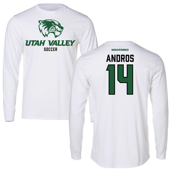 Utah Valley University Soccer White Classic Long Sleeve - #14 Mark Andros
