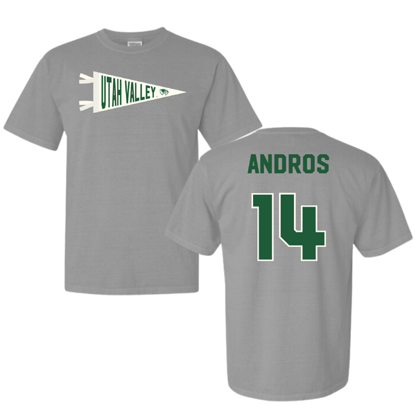 Utah Valley University Soccer Light Gray Pennant Comfort Colors Tee - #14 Mark Andros