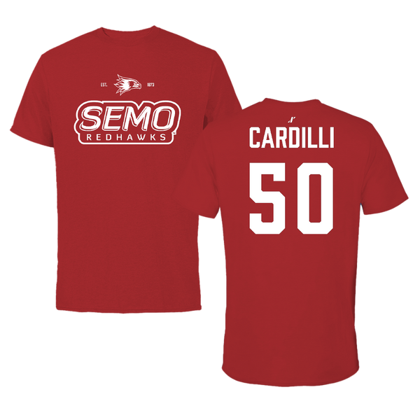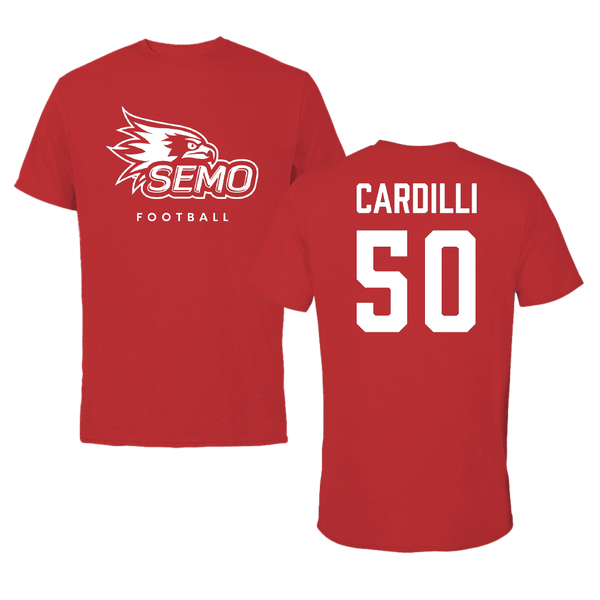Southeast Missouri State University Football Red Tee - #50 Mike Cardilli