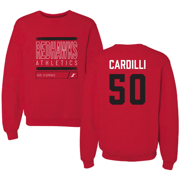 Southeast Missouri State University Football Red Dominate Crewneck - #50 Mike Cardilli