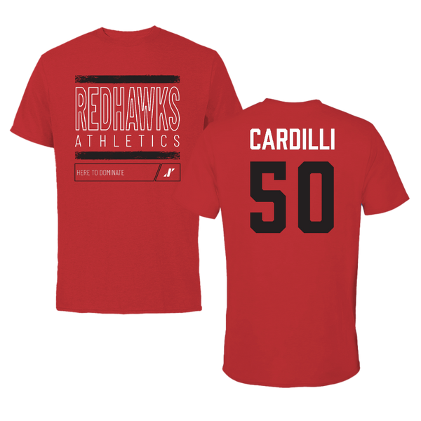 Southeast Missouri State University Football Red Dominate Tee - #50 Mike Cardilli