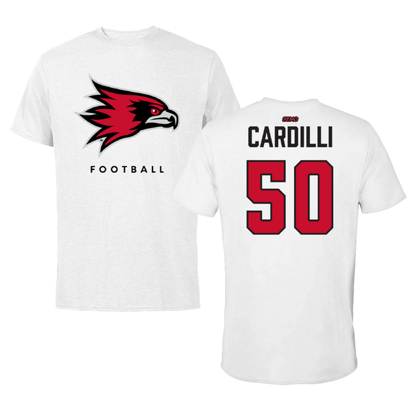 Southeast Missouri State University Football White Tee - #50 Mike Cardilli