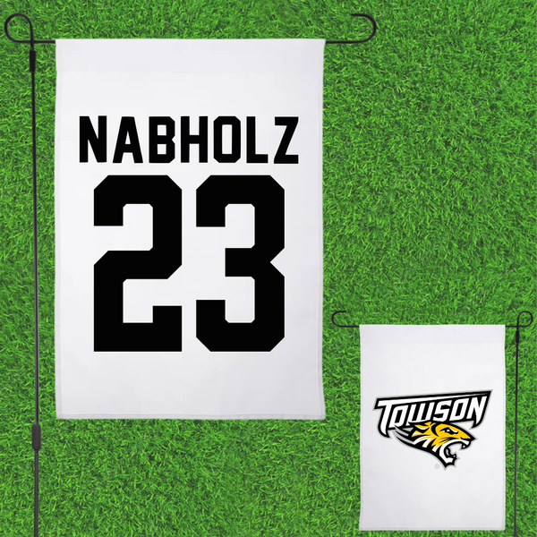 Towson University Baseball White Garden Flag - #23 Nate Nabholz