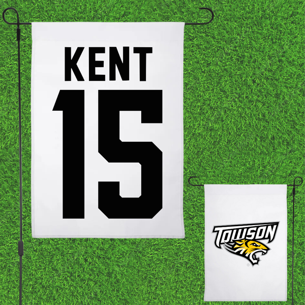 Towson University Football White Garden Flag - #15 Nathan Kent