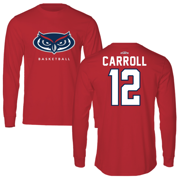 Florida Atlantic University Basketball Red Performance Long Sleeve - #12 Tre Carroll