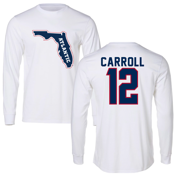 Florida Atlantic University Basketball White Performance Long Sleeve - #12 Tre Carroll