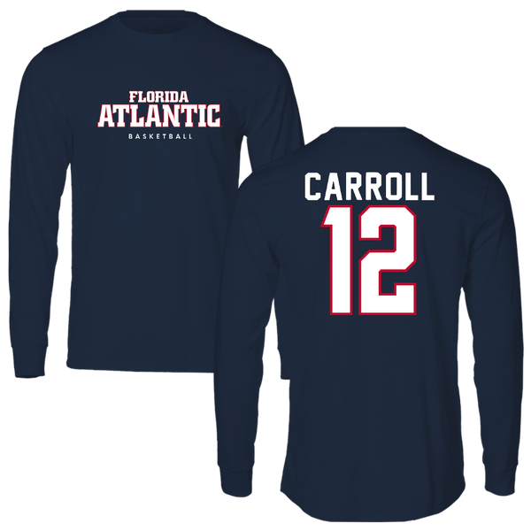 Florida Atlantic University Basketball Navy Block Long Sleeve - #12 Tre Carroll