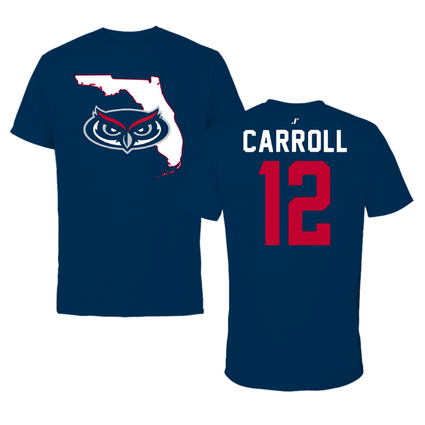 Florida Atlantic University Basketball Navy State Tee - #12 Tre Carroll