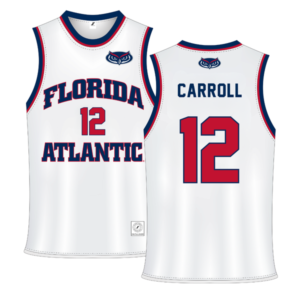 Florida Atlantic University White Basketball Jersey - #12 Tre Carroll