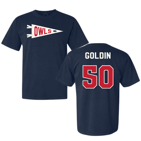 Florida Atlantic University Basketball Navy Pennant Comfort Colors Tee - #50 Vladislav Goldin