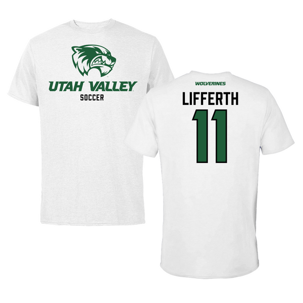 Utah Valley University Soccer White Performance Tee - #11 Zach Lifferth