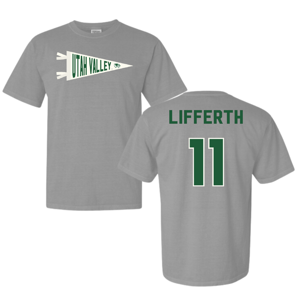 Utah Valley University Soccer Light Gray Pennant Comfort Colors Tee - #11 Zach Lifferth