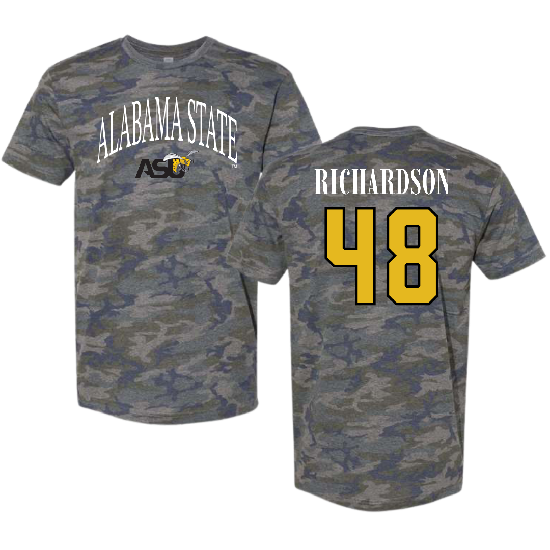 Alabama State University Football Vintage Camo Tee - #48 Myles Richardson