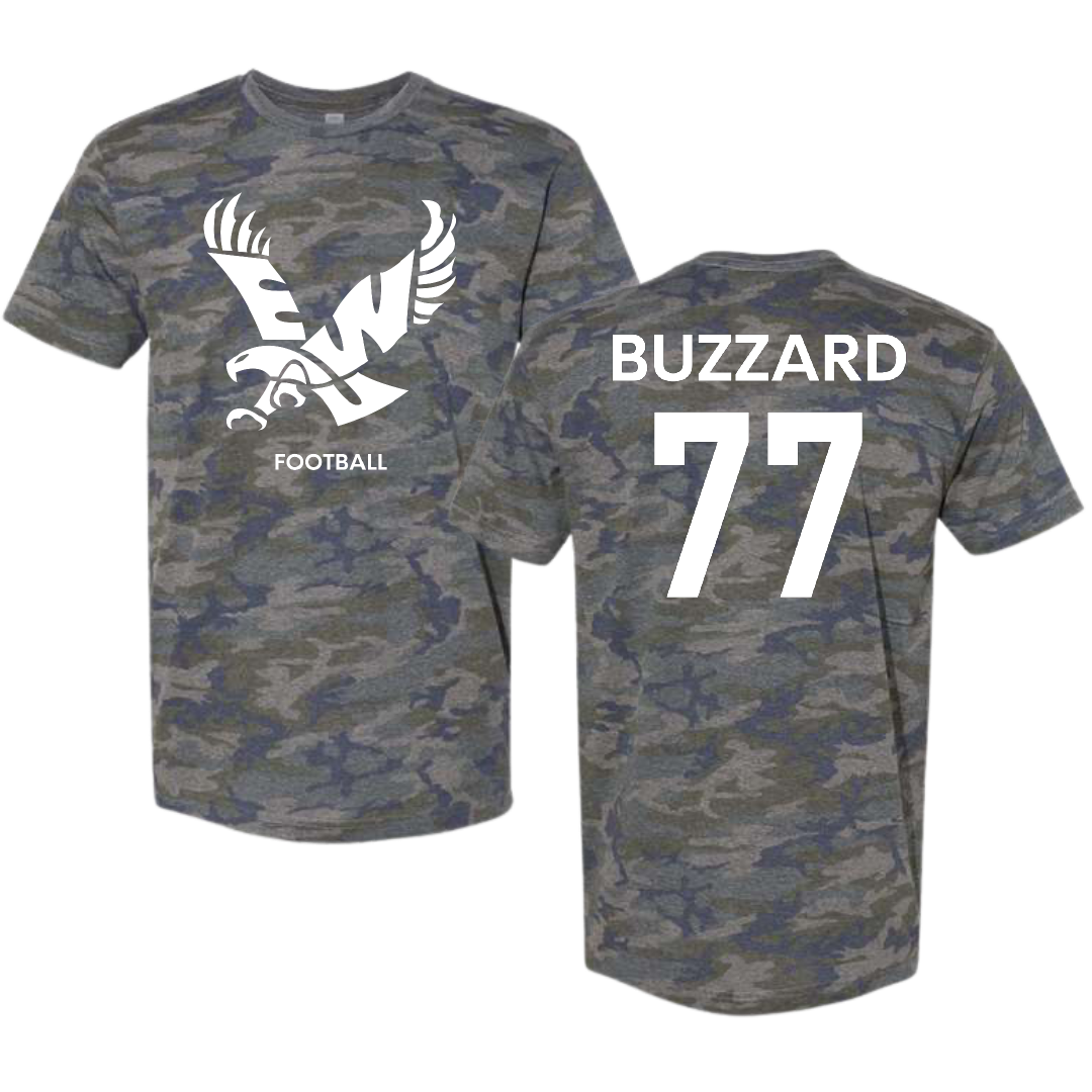 Eastern Washington University Football Vintage Camo Tee - #77 William Buzzard