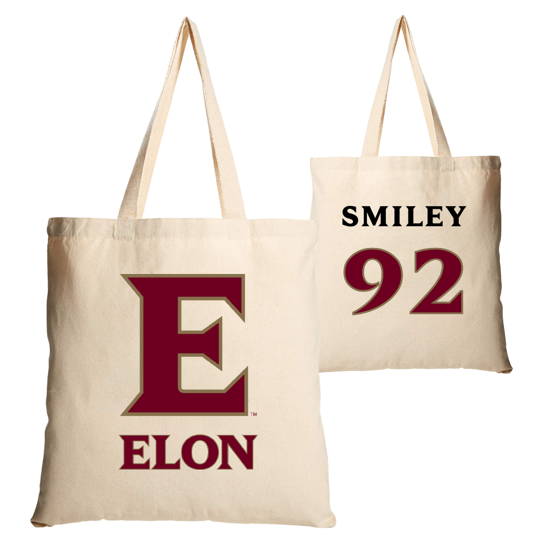Elon University Football Tan Canvas Tote Bag - #92 Brandon Smiley