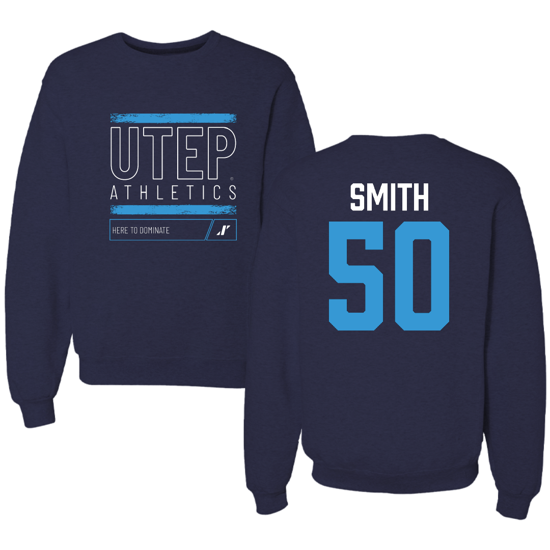 University of Texas at El Paso Football Navy Dominate Crewneck - #50 Brennan Smith
