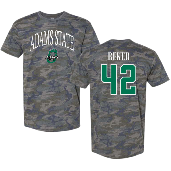 Adams State University Baseball Vintage Camo Tee - #42 Seth Reker