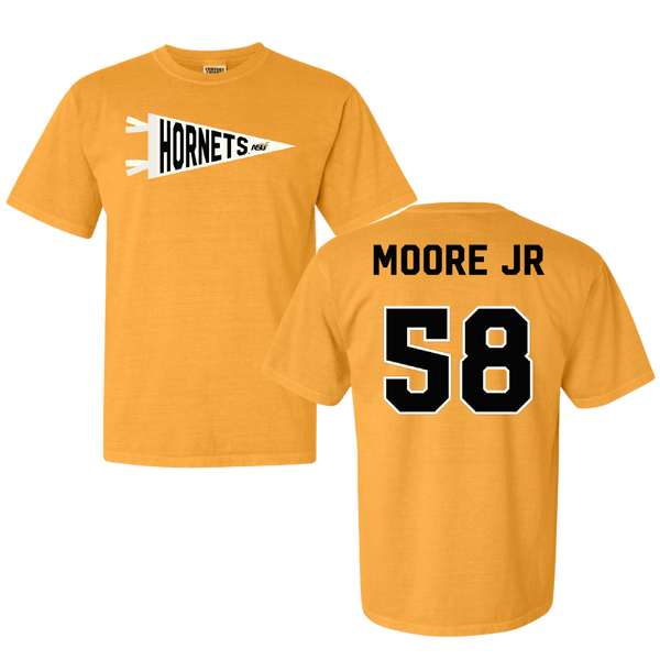 Alabama State University Football Gold Pennant Comfort Colors Tee - #58 Michael Moore Jr