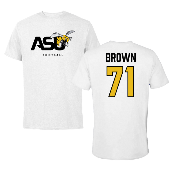 Alabama State University Football White ASU Tee - #71 Isaiah Brown