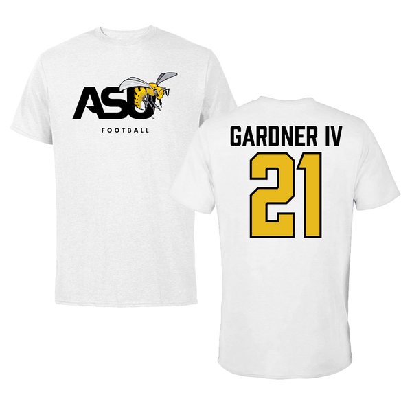 Alabama State University Football White ASU Tee - #21 JR Gardner IV